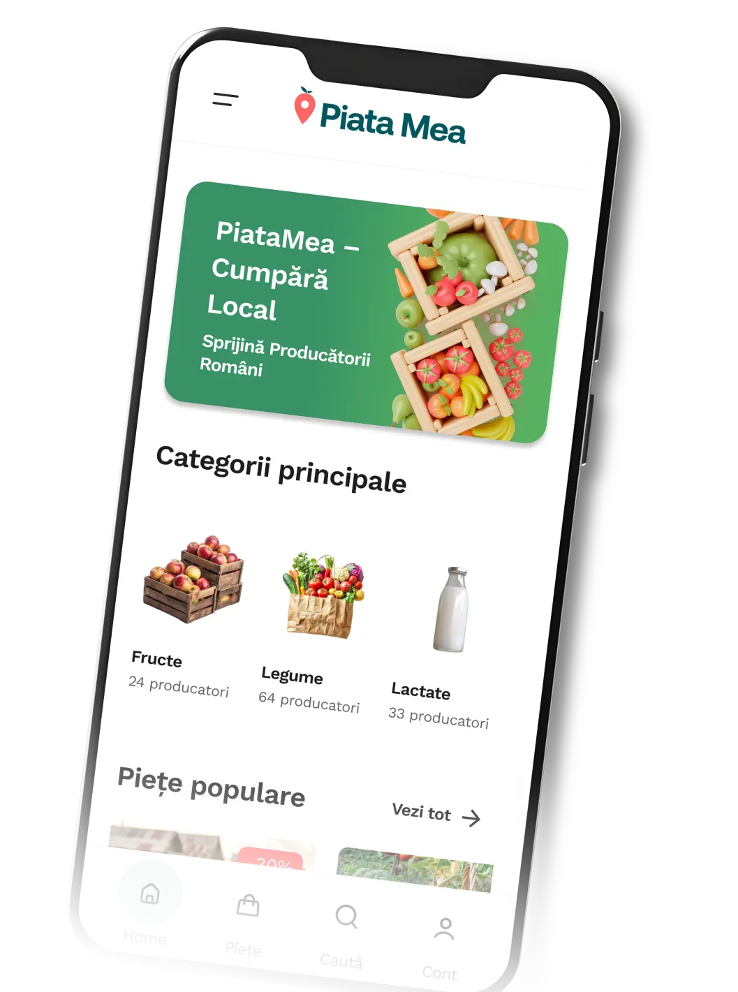 Piața Mea este o platformă care conectează direct clienții cu producători locali din România.